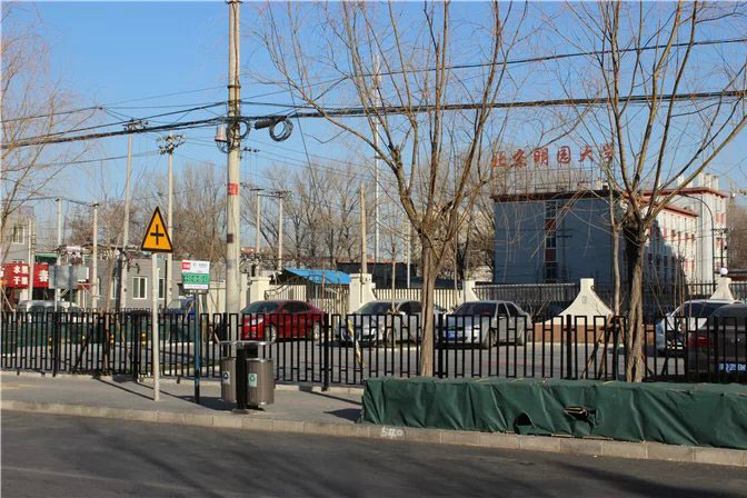 好吧,到了悦秀路南口,下车了,在你视线的左上角,有着闪着红光的6个大字,有木有....北京明园大学,在往左边看去,是一排饭店和商店,买东西很方便,而且这附近还有两个很大型的supermarket,物美、京客隆。